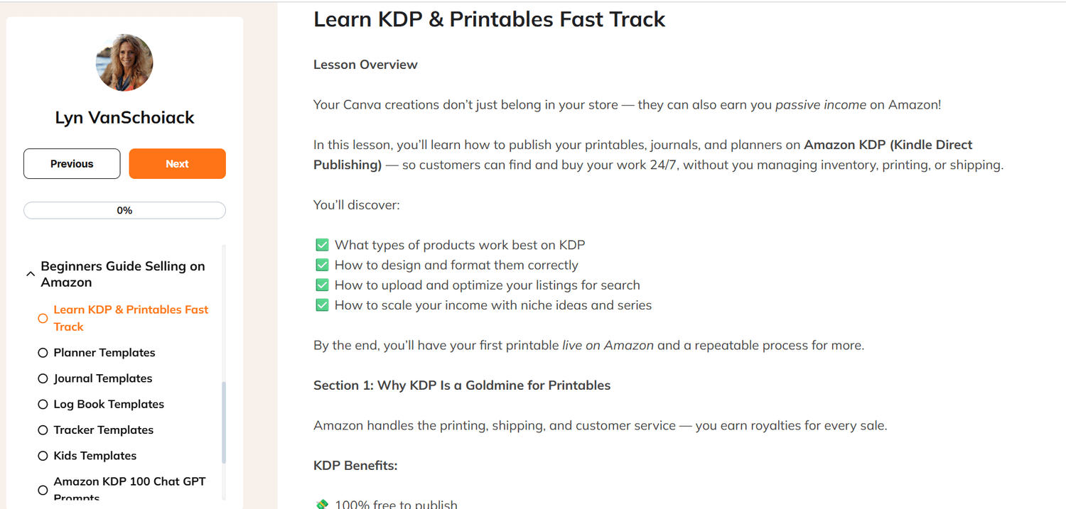 A peek inside of the KDP section of my Build Your Digital Product Empire Course